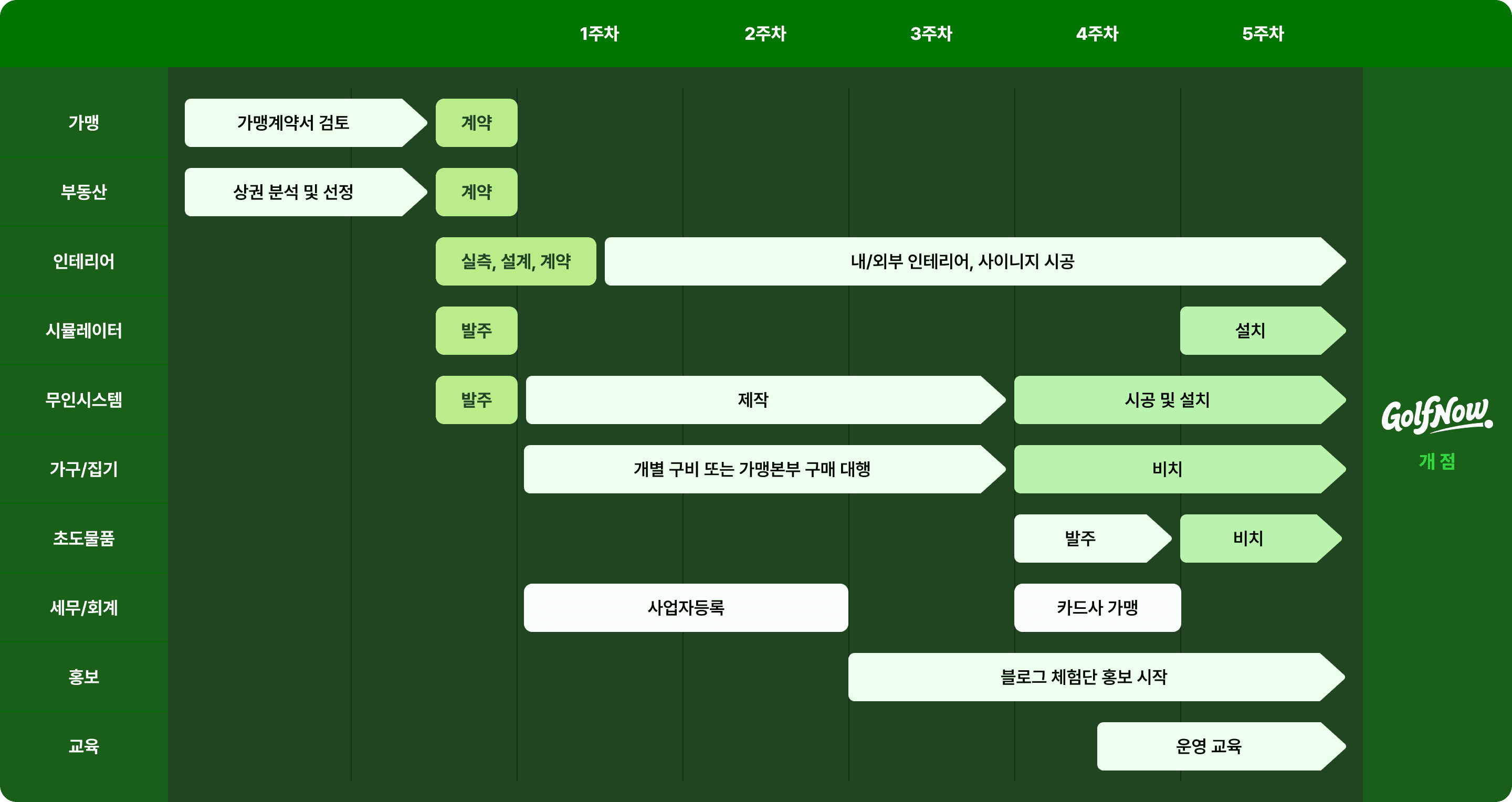 처음 창업하시는 분도 안심하고 시작하실 수 있도록 골프나우가 상권 분석부터 오픈 후 운영 관리까지 믿을 수 있는 파트너로 함께합니다